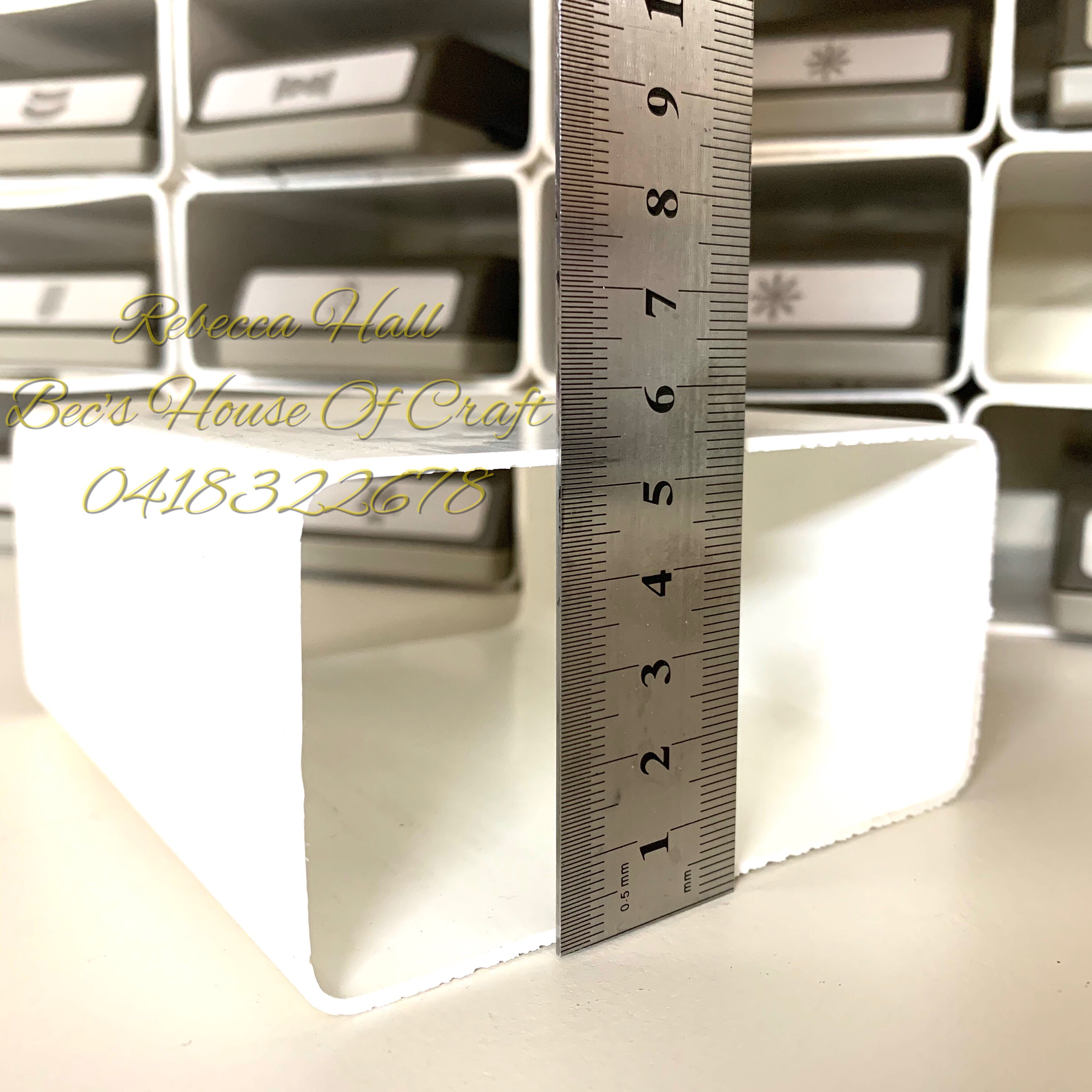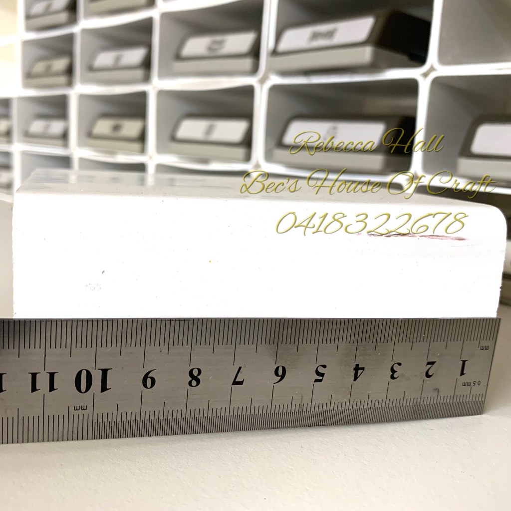 The simple part about it is that the little cubby holes are made out of PVC down pipe that you get from the hardware store. I cut it up into these pieces and then stack them on top of each other. They sit really well on each other but I do have it fitting tightly between my over head shelf unit and the shelf that it is sitting on. The beauty about this system is that I can easily add more any time I like by simply get another down pipe and cutting it up. I am lucky that my husband has a drop saw and I can use these tools to cut the pipe, as I get nice clean cuts that are the same length. You can however cut it with a hack saw it will do just as neat a job and build up your arm muscles as you go. 💪 Here is a link for Bunnings Hardware store that i purchased the pipe from. Bunnings square downpipe
