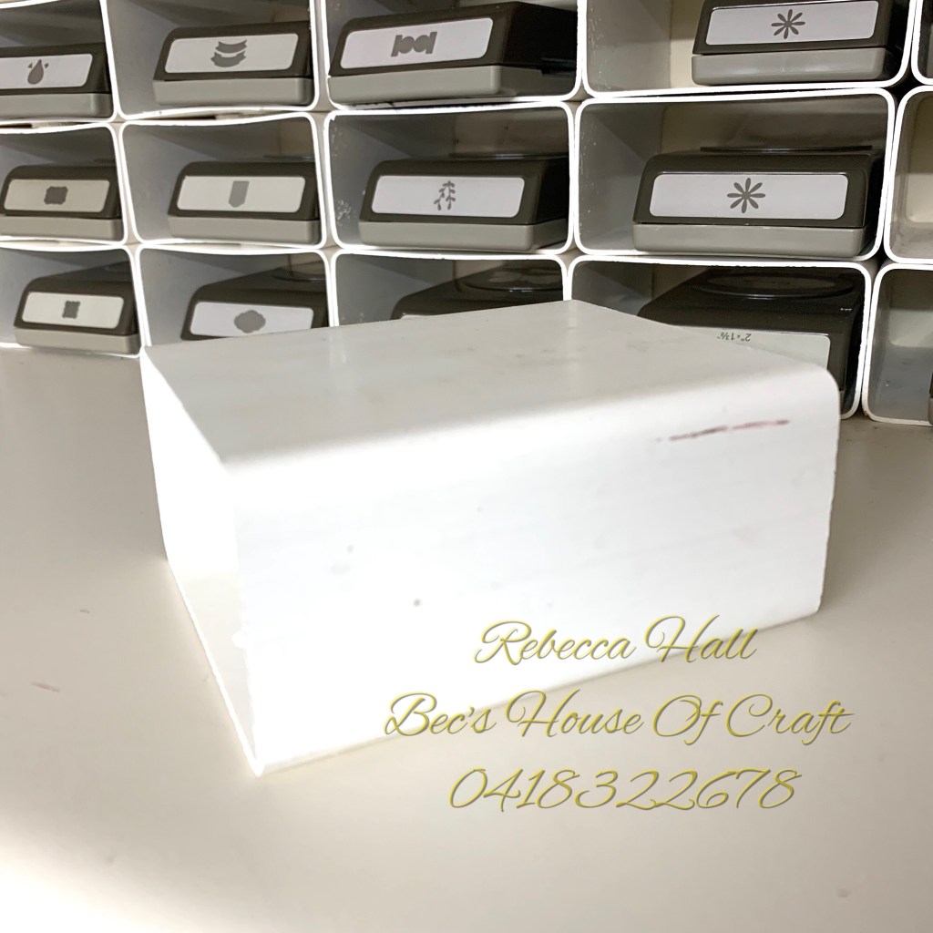 Here is a close up look at my punch storage and some measurement details for you. My overall height in between my shelves is 49cm, and the length of the entire area I have for my punches is 1.80cm in old terms that’s nearly six foot long…wow.. Each piece is cut at 11.5cm