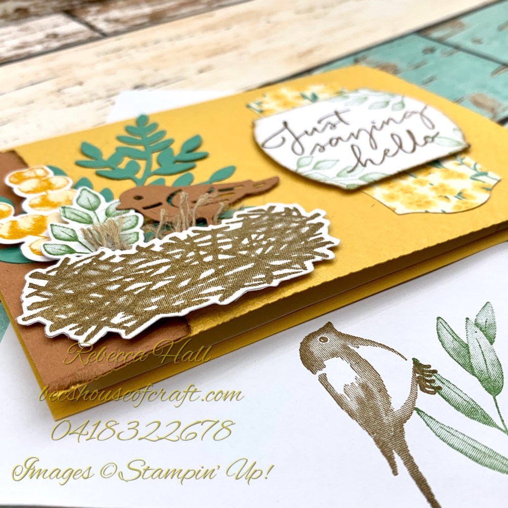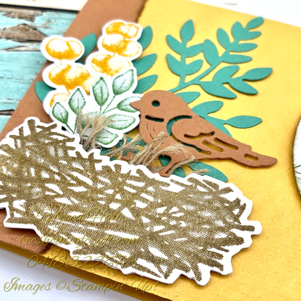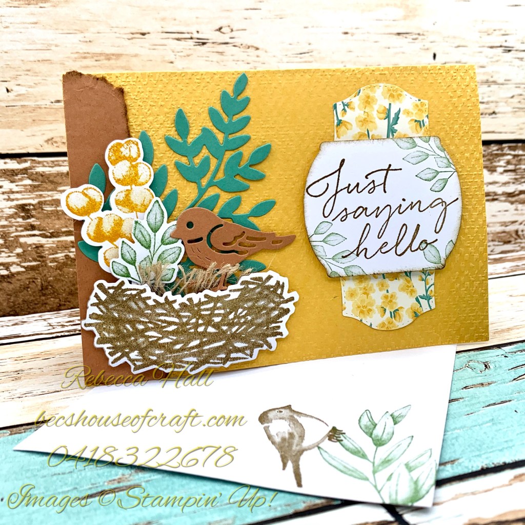 Stampin’ Up!s Birds and Branches bundles is one of my favourites. With images of birds, nests, eggs, branches and flowers there is enough stamps to make the prettiest of cards suitable for all occasions. Even if your just sending a card to say hello…
