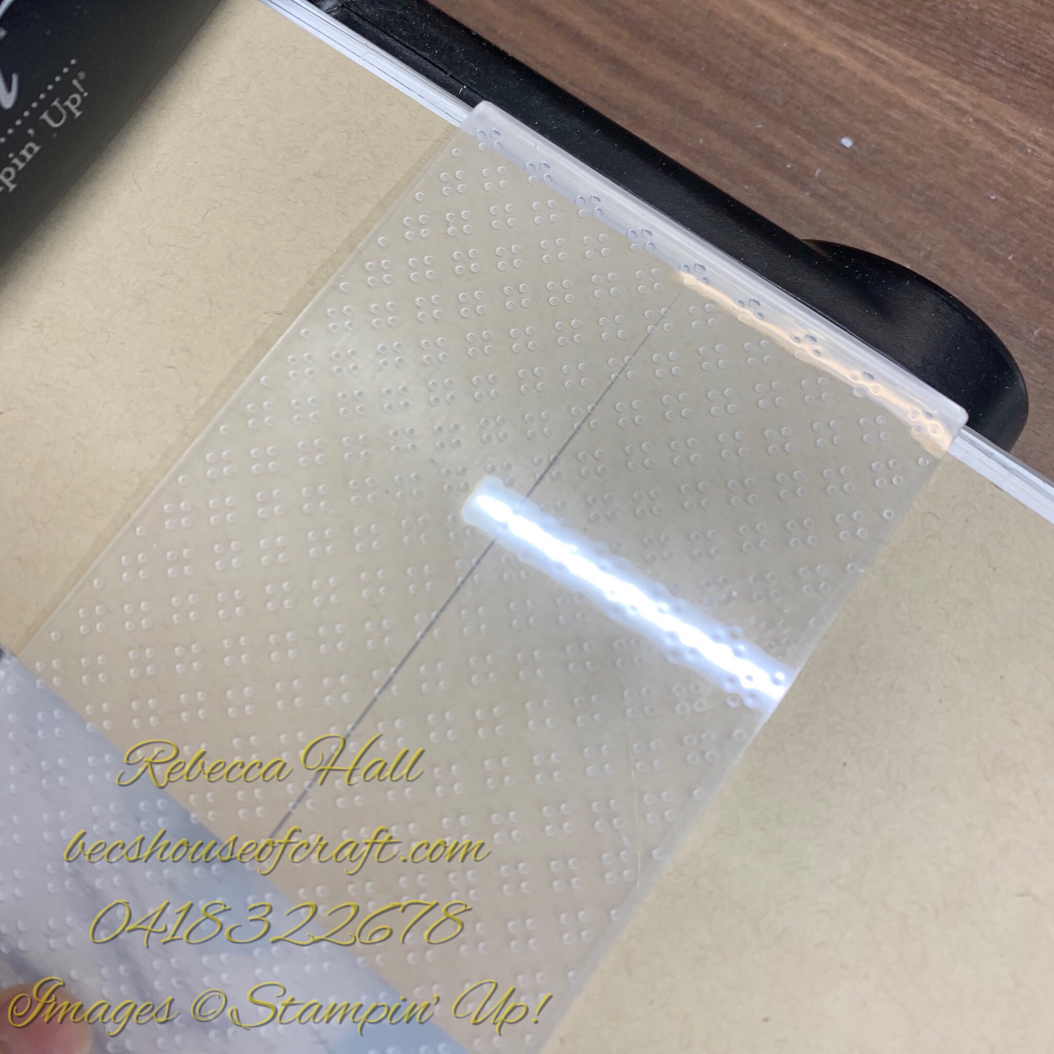 I embossed the bottom of my card base with the Wrapped in Texture embossing folder. By putting the bottom of two card bases in half way on the embossing folder I could run the two bases through my die cutting machine at the same time.