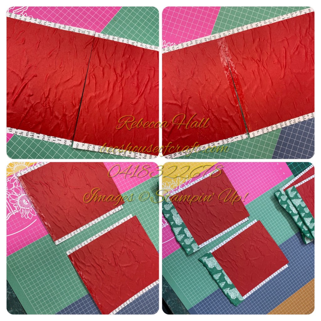 When I was attaching the Designer series paper to the bottom of the front Real red card stock I put the bottom of the two together and ran my Stampin Seal along the bottom to get adhesive on both card fronts. This made it easy then to attach the ‘Tis the season designer series paper to the bottom of my card front.