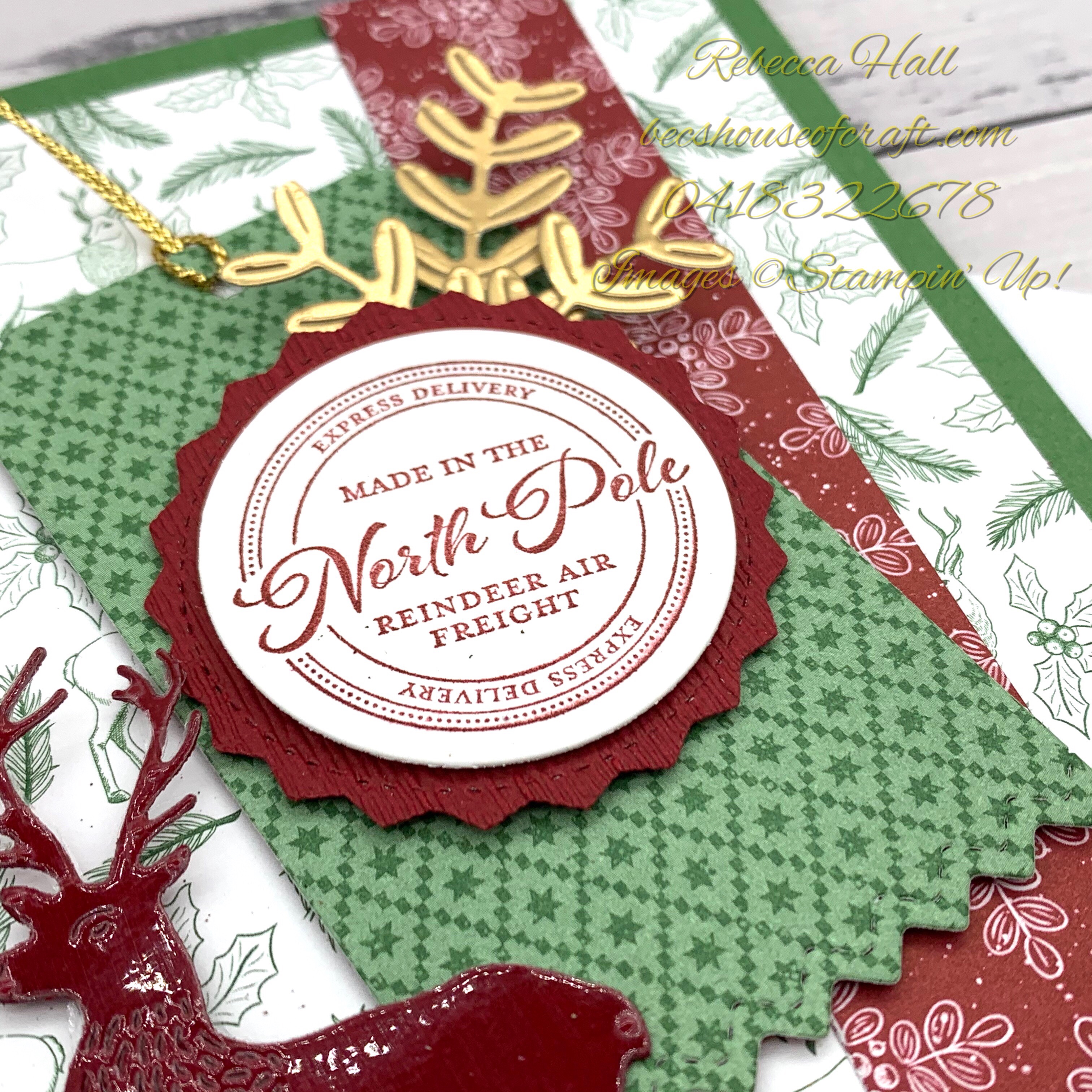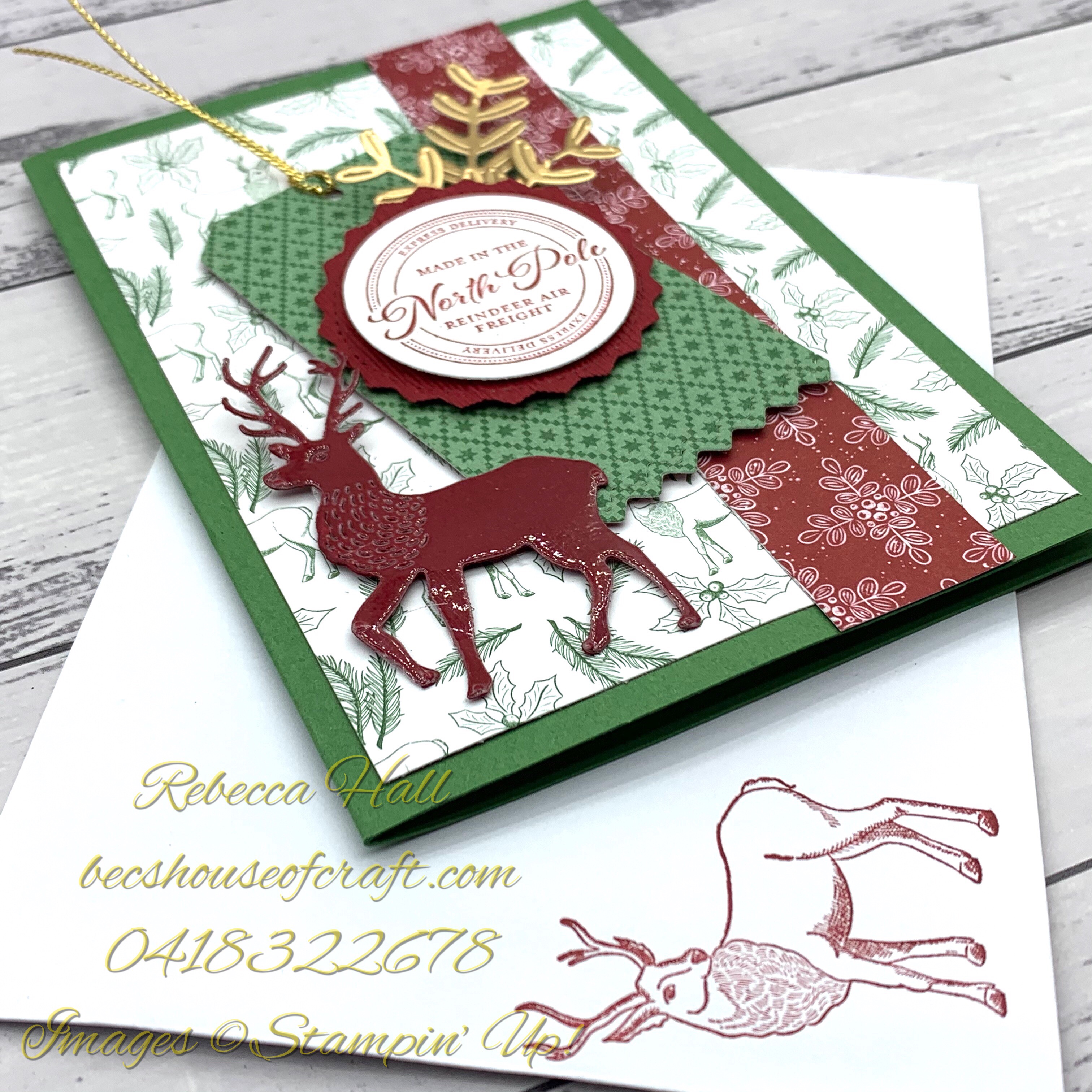 I started by using the paper with the reindeers and holly from the Tis’ The Season Designer Series Paper on a Garden Green card base.
