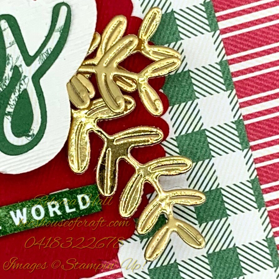 Next I took the foliage dies from the North Pole Wonder dies and die cut them in Gold Foil for a bit of bling.