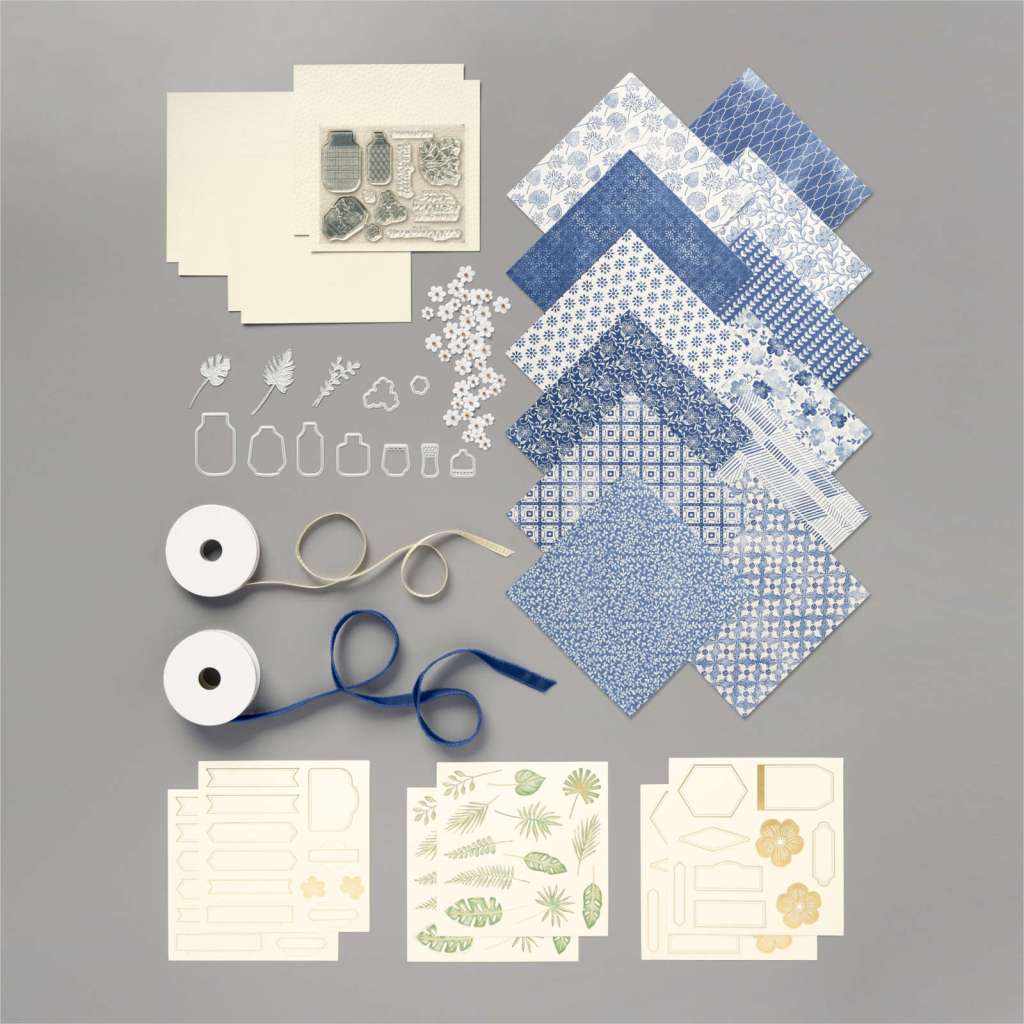 The Boho Indigo product medley comes with a stamp set, matching dies, designer series paper, paper flower embellishments, die cuts and beautiful dry embossed paper. Check it out…