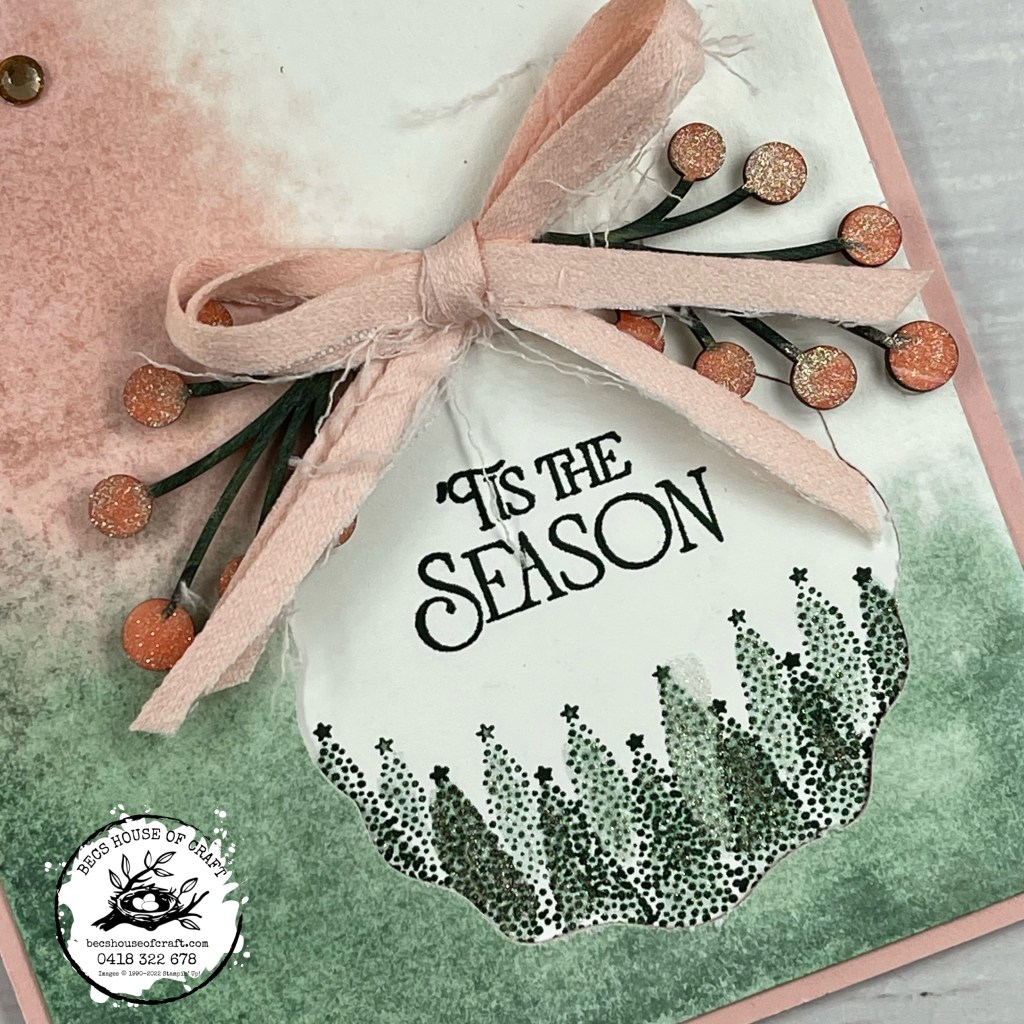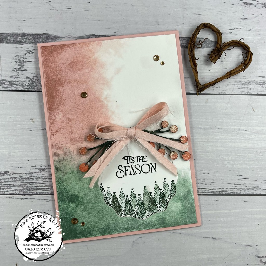 Did you know that every Tuesday in my newsletter I send out a free written tutorial of the card that I create on Saturday mornings at 9am every week during my Facebook Live segment I call Breakfast with Bec! This week I created a card that is not your typical Christmas colours. During the Facebook live I shared a technique that shows an easy way to create great water coloured backgrounds using water colour paper and a block.